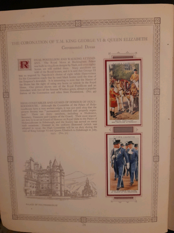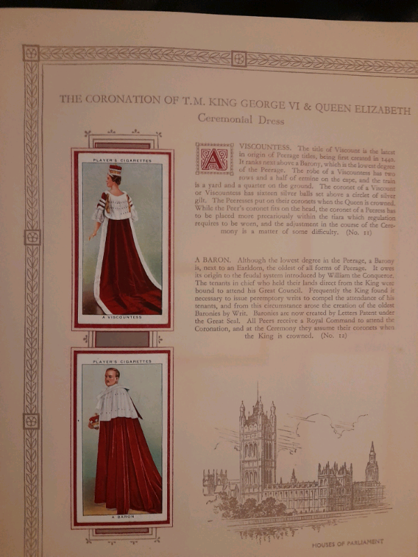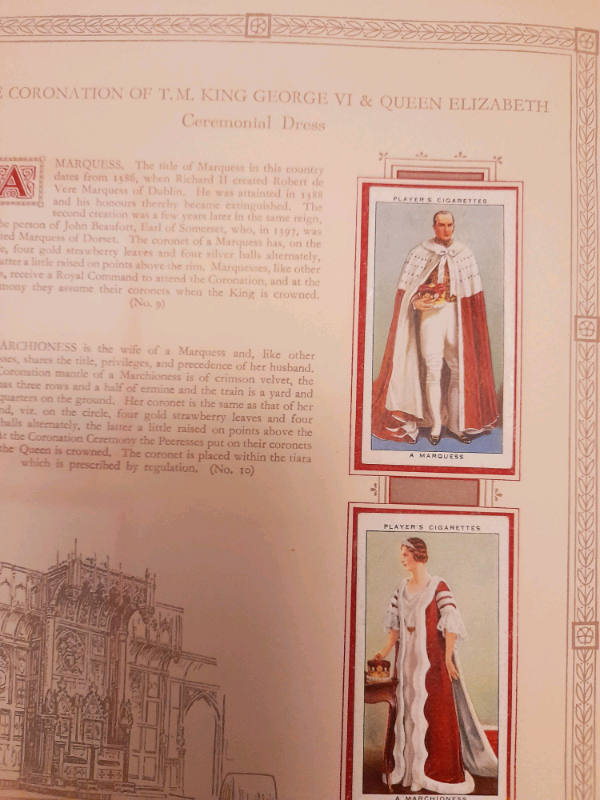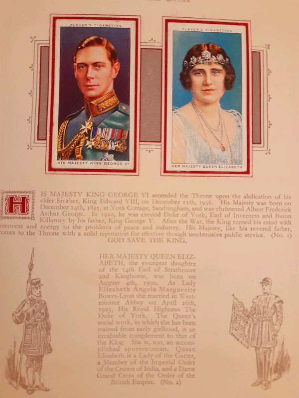 This is all complemented by the brightly coloured 'cigarette cards', depicting His Majesty King George VI and Her Majesty Queen Elizabeth, the aforementioned nobles, members of the Royal household and related associates.