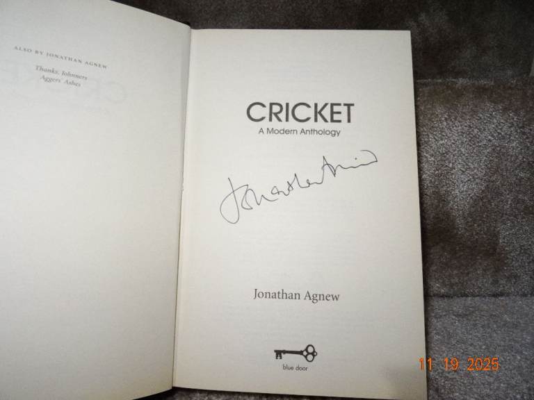 Cricket, A Modern Anthology by Jonathan Agnew. Excellent condition, signed copy by the author. Forward by Rt Hon Sir John Major KG CH.
