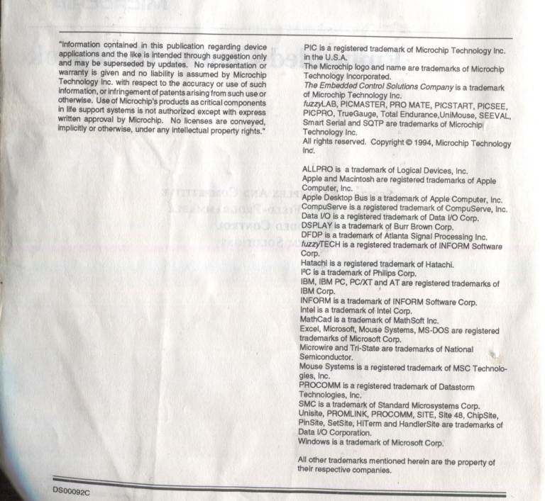 Embedded Control Handbook 1994-1995 - Microchip Paperback