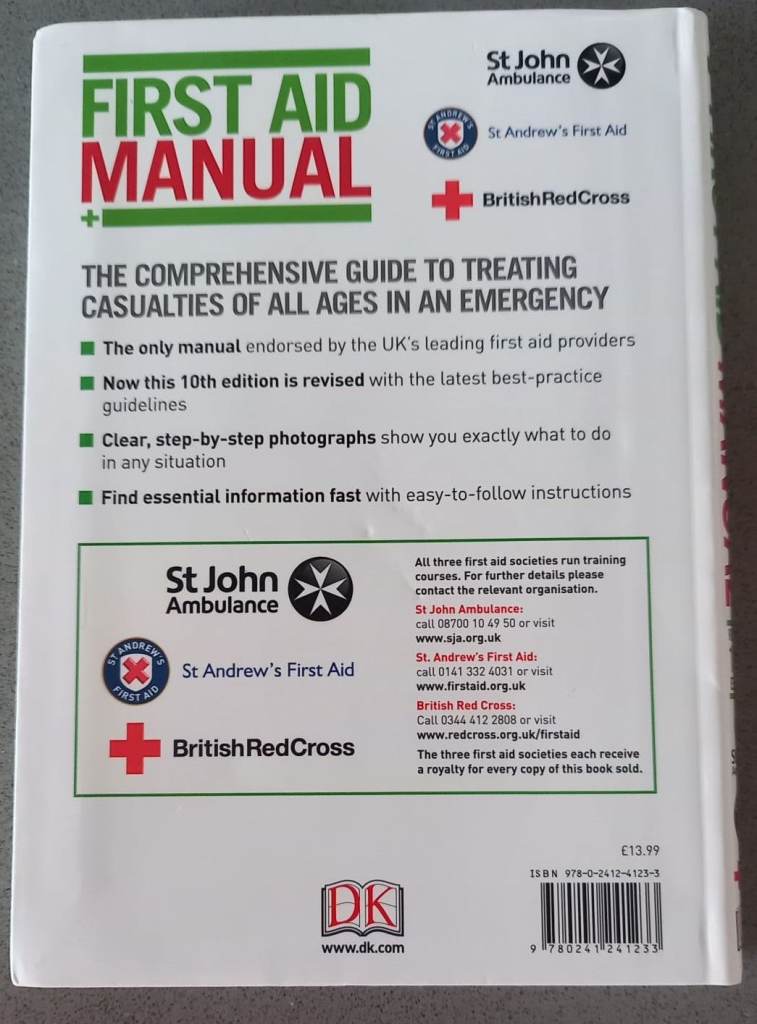 - Fully authorised first aid guide, this book is used as the official training manual for the UK's leading first aid organisations' courses, St John Ambulance, St Andrew’s First Aid and the British Red Cross