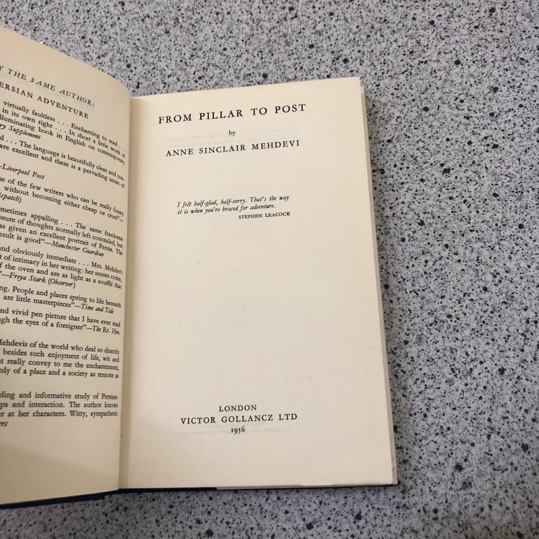“From Pillar to Post" by Anne Sinclair Mehdevi is a rare hardcover first edition published in 1956 by VICTOR Gollancz LTD. The book features a dust jacket and is written in English, making it a valuable collectible for book enthusiasts.