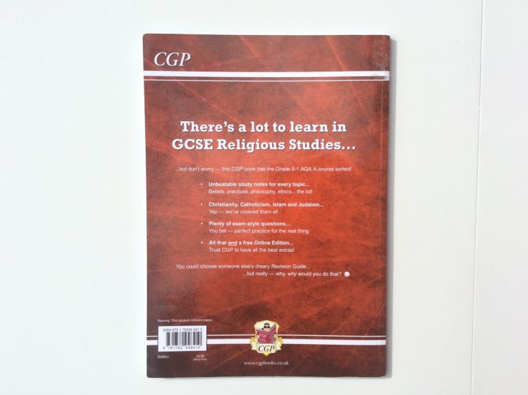 This CGP Revision Guide is a brilliant guide to success in the Grade 9-1 GCSE AQA A Religious Studies course. It's full of crystal-clear study notes covering the Christianity, Catholic Christianity, Islam and Judaism options - as well as all the thematic and textual studies from the latest curriculum. Throughout the book there are plenty of revision tasks, exam tips and exam-style questions. Like new and has no marks or writing on top of it.