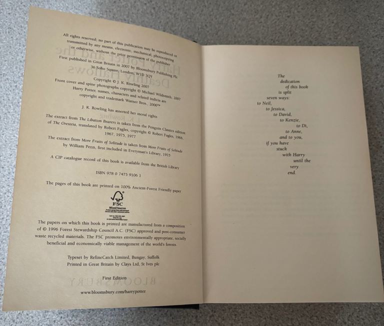 Harry Potter and the Deathly Hallows first edition