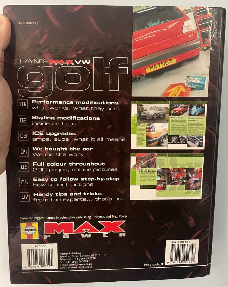 Free! Used Haynes Max Power VW Golf modifying guide. Most of the cars in it are Mk2 Golf’s but there are some Mk 3’s in it.