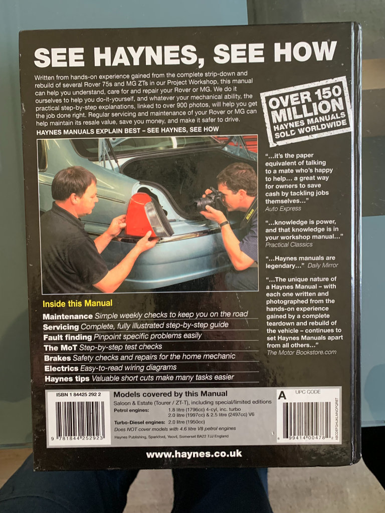 HAYNES WORKSHOP MANUAL FOR ROVER 75 AND MG ZT 1999 TO 2006