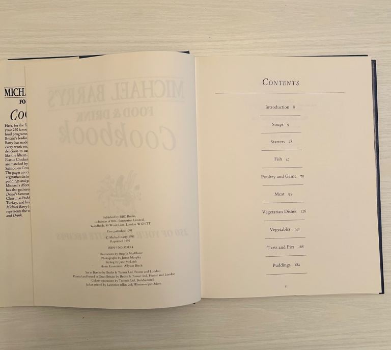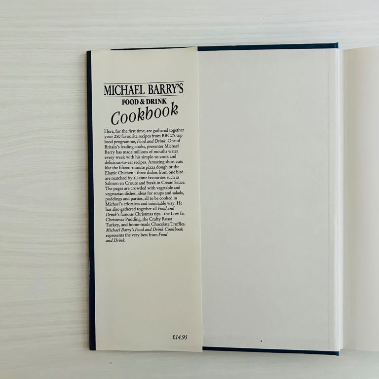 Michael Barry’s Food & Drink Cookbook - BBC - 250 Favourite Recipes - Immaculate. Rarely available in this superb condition. From golden age of British cookery this Michael Barry’s Food & Drink Cookbook is a classic companion to the beloved BBC series. Featuring 250 of the nation’s favourite recipes, this beautifully presented hardback is a treasure trove of culinary inspiration—from timeless comfort food to elegant dinner party dishes. Whether you’re a nostalgic fan of the show or simply seeking reliable, flavour-packed recipes, this edition delivers with charm and clarity. Immaculately preserved and barely used, it’s ready to become the heart of your kitchen bookshelf.