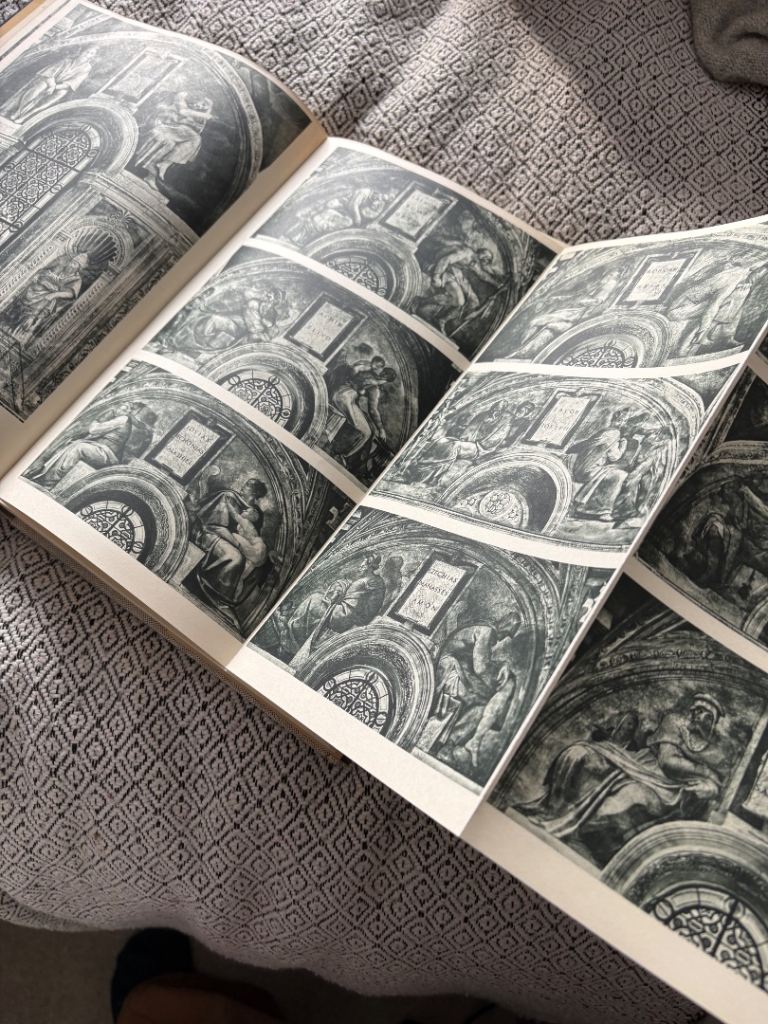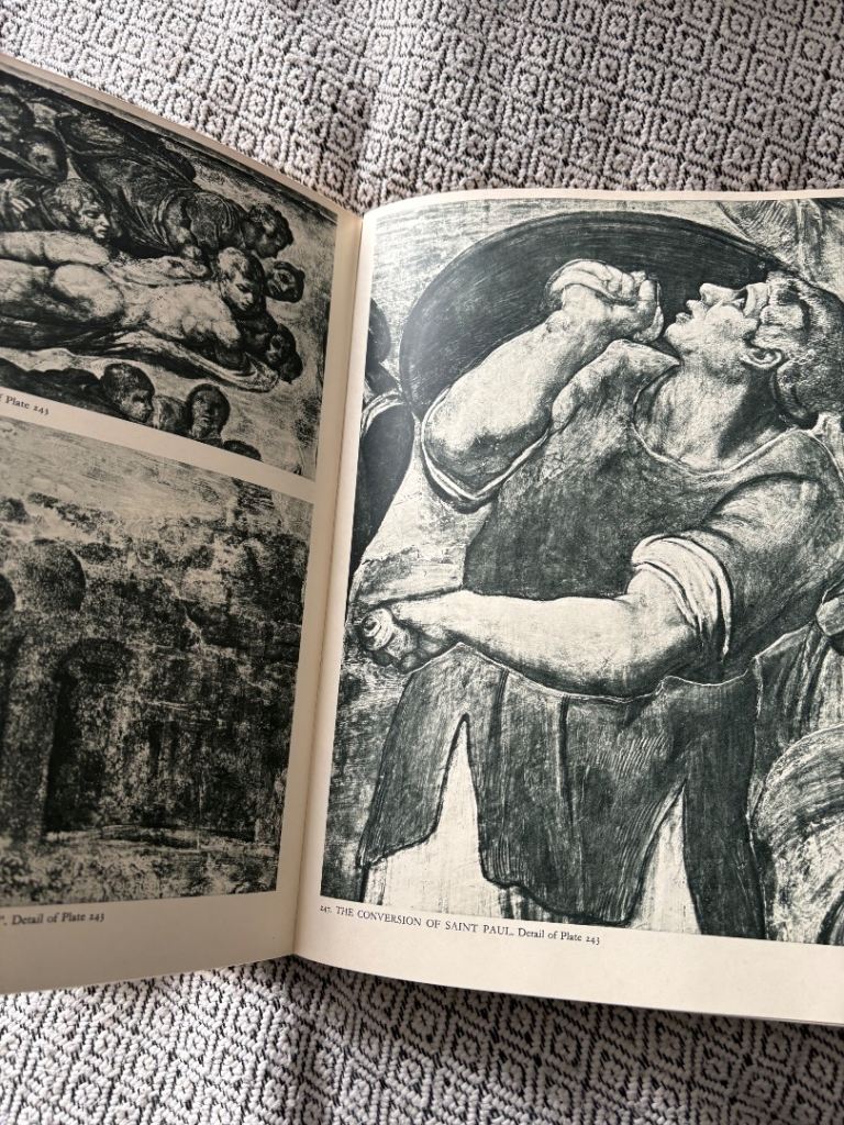 This 1967 hardcover book, "Michelangelo" by Ludwig Goldscheider delves into the works of the renowned artist, exploring his paintings, sculptures, and architectural designs. Published by Phaidon Press, the book offers a comprehensive look at Michelangelo's oeuvre from an art historical perspective, focusing on individual artists and general art topics.