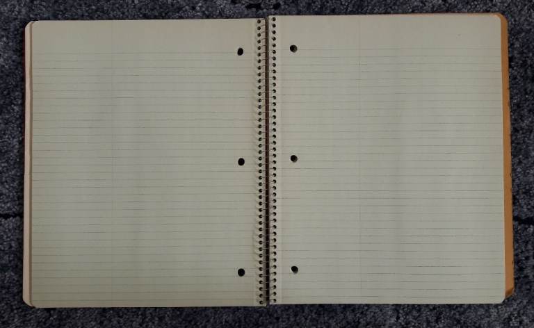 Unused lined, spiral bound, elegant notebook