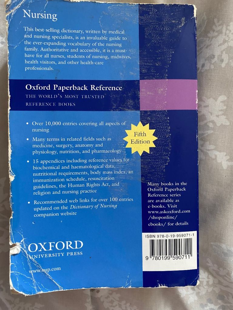 Oxford dictionary of nursing and the Text book of Adult Nursing. They may be useful for anyone studying nursing