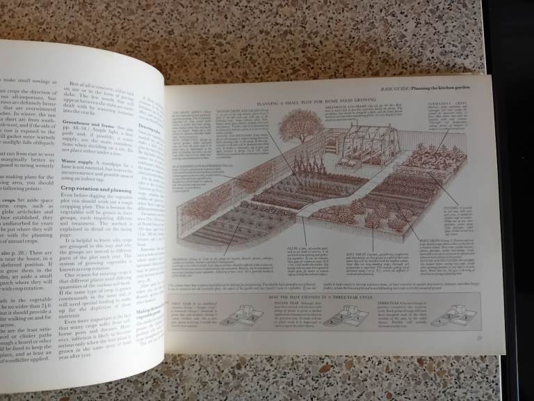 May be ideal for new growers / gardeners as there is so much information here. Setting your kitchen garden, planting, weeds, fruit and vegetables, wine making, recipes, poultry & bee keeping. The old books are always the best ! Dated 1977. Clean and only a few scuffs on the hardback cover. Location - Ulgham Grange NE61 3AU.