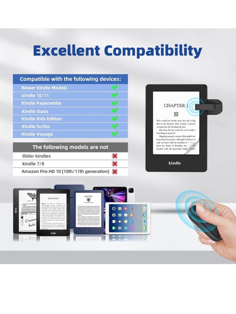 RF Remote Control Page Turner for Kindle Paperwhite Kobo eReaders Camera Remote Shutter, Wireless Page Turner for iPhone ipad Android Tablets Reading Novels (Blac