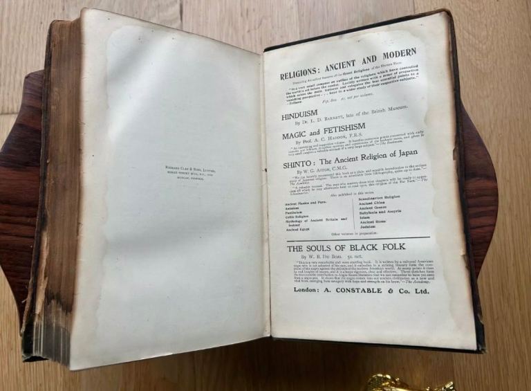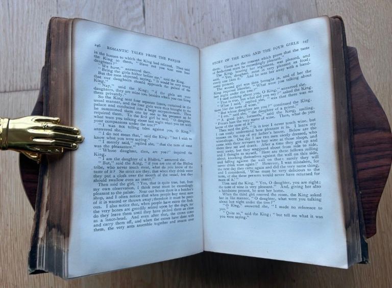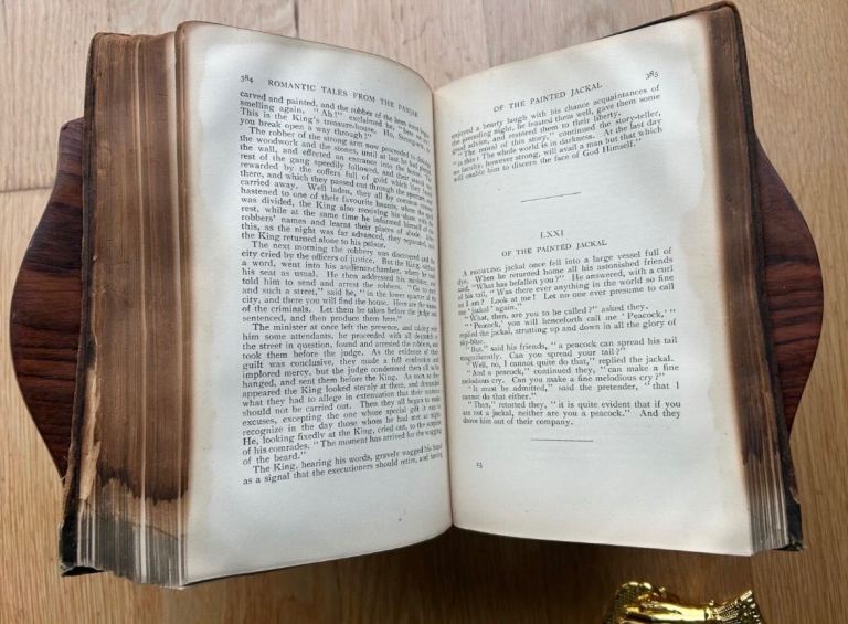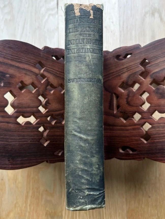 Romantic Tales from the Panjab by Charles Swynnerton is a vivid collection of folklore that brings to life the rich tapestry of Panjabi culture and traditions. These timeless stories brim with passion, valor, and heartache, weaving tales of star-crossed lovers, heroic feats, and divine interventions. Swynnerton masterfully captures the essence of Panjabi oral tradition, preserving its charm and wisdom for generations to come. With its blend of romance, mysticism, and morality, this anthology offers a mesmerizing glimpse into the soul of a land steeped in history and storytelling. this collection features ninety-seven folk and fairy tales from India. Compiled by Rev. Charles Swynnerton (1842–1928), who served as Senior Chaplain to the Indian Government, these tales capture the essence of India's vibrant oral storytelling traditions. No missing papers or titles. Contains publisher's original advertisements. Small inked signature. Damage to top of spine. Fore edge looks slightly charred, but the marking does not go into the pages much. Bound in its original green cloth with a gilt border framing an intricate decorative gilt design on the front cover.
