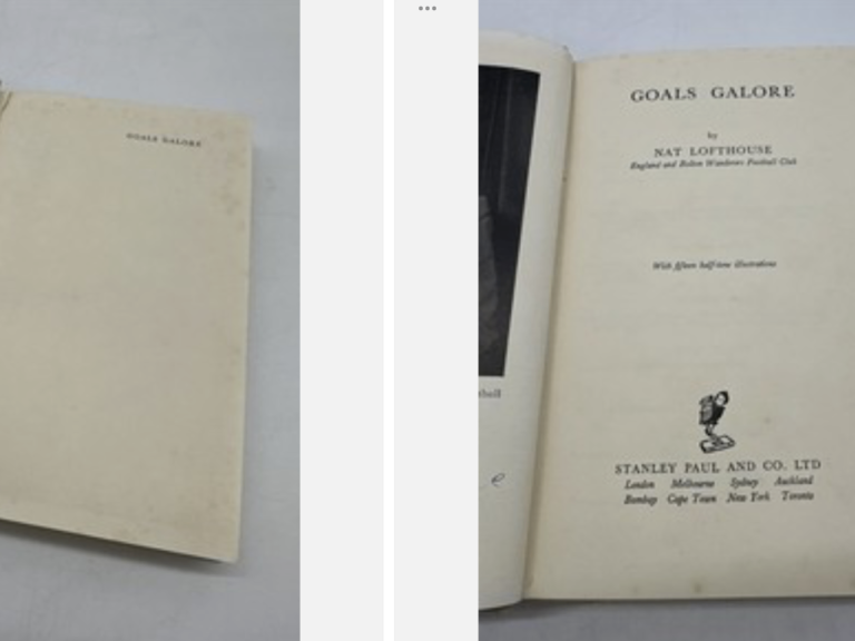 SIGNED NAT LOFTHOUSE HB book ‘ Goals Galore’ 1954 Signed to photograph title page.