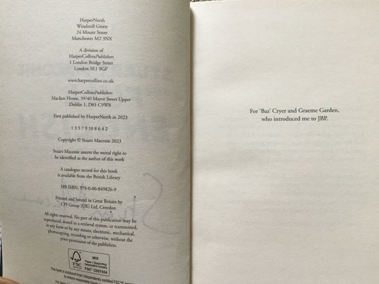 SIGNED Stuart Maconie hard back book ‘The Full English’ Signed title page.