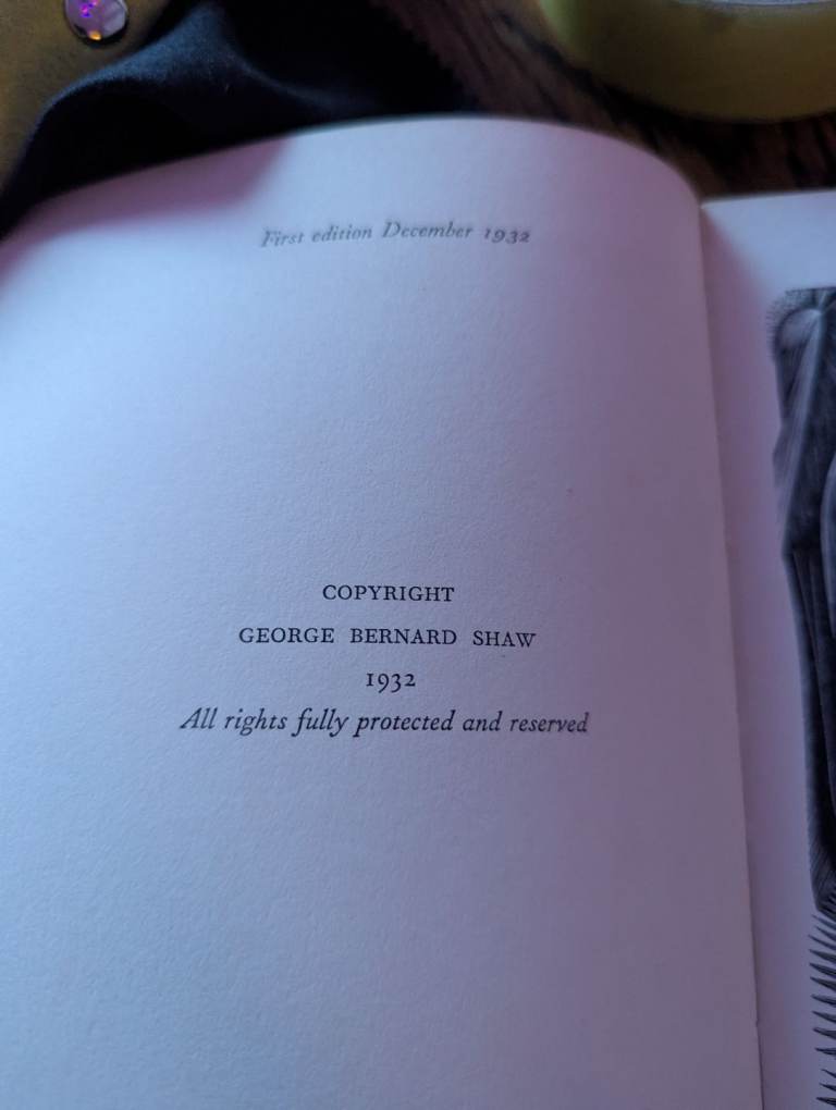 Rare first edition hardback copy of this 1932 book by George Bernard Shaw.