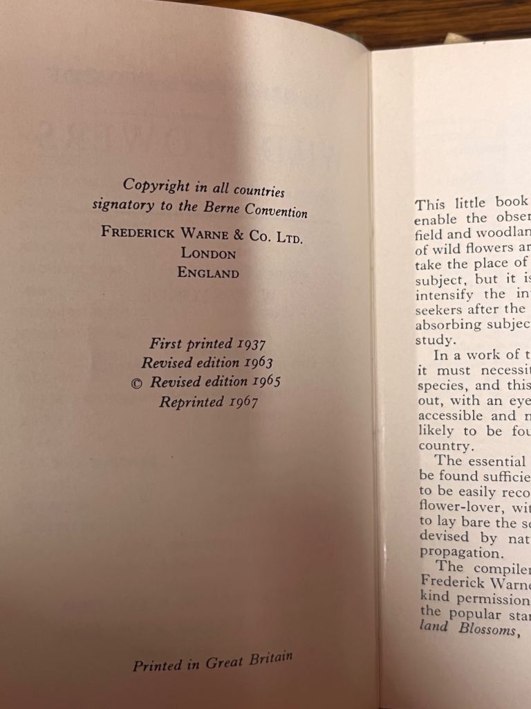 The Observer's Book of Wild Flowers Vintage Books 1967