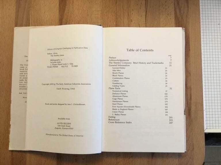 Hardcover sixth printing (1983) of The Stanley Plane A History And Descriptive Inventory by Alvin Sellens. The spine, front and back covers are in very good condition. The dust jacket has signs of wear, at the edges as seen in the photos. The pages are unmarked. I can't find this book for less than £30 and most are much more. Asking £10 or best offer