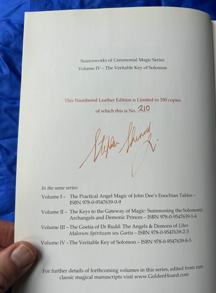 A scarce limited edition of The Veritable Key of Solomon, one of the most important modern scholarly presentations of the Solomonic magical tradition, edited and translated by two of the foremost contemporary authorities on Western ceremonial magic.