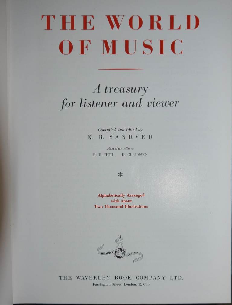 The World Of Music Listener's Companion Book 1954 by K. B. SANDVED Stunning Example
