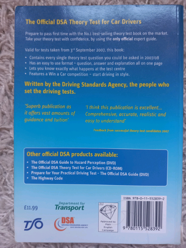 Theory test book for car drivers, good condition from smoke and pet free home, collection from S2 Manor area or city center