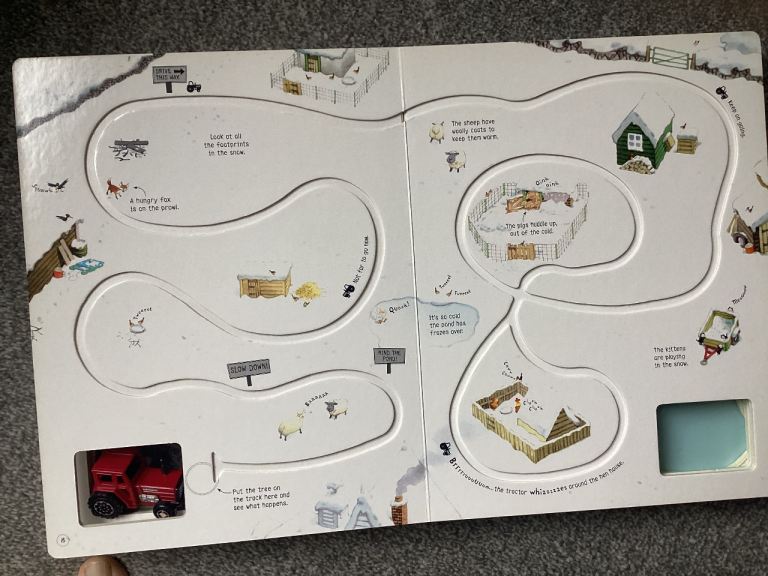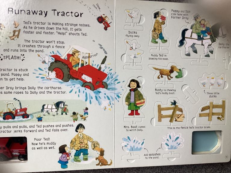 Brand new, never used. Usbourne tractor book, gorgeous thick cardboard book with wind up tractor, multiple pages that tractor can run on and multiple story pages with removable pop up self build character. Was £14.99 will sell for £7.50