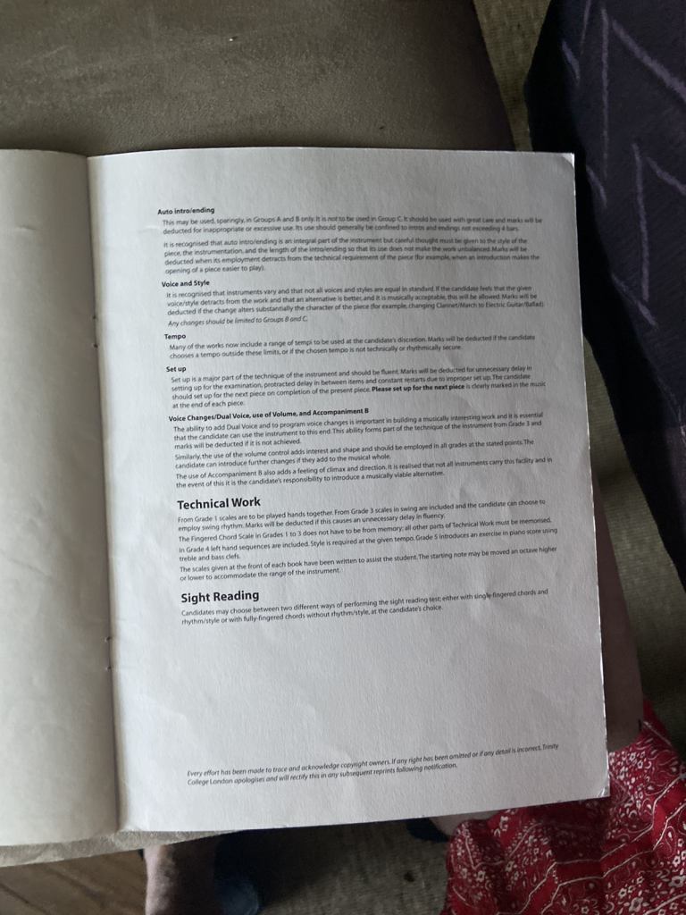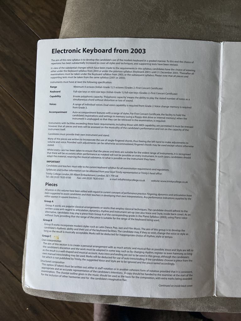 Trinity electronic keyboard book
