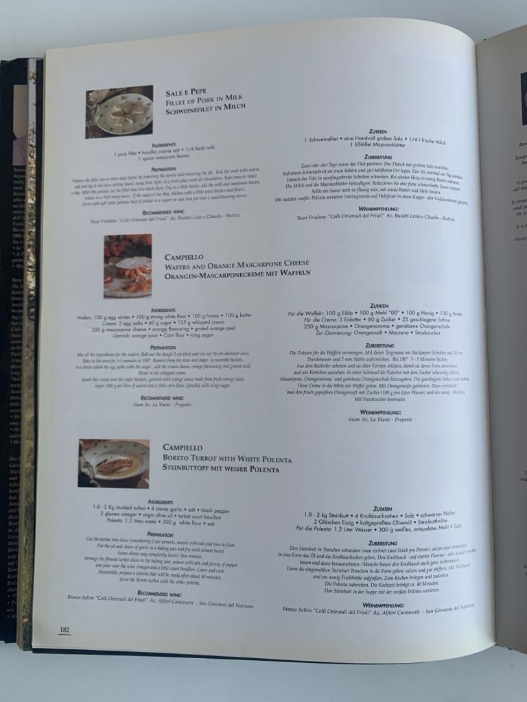 Written by Luigi Cremona, Un Amore Chiamato Friuli is a beautiful coffee-table book packed with information about Friuli’s culture, history, and cuisine. Divided into four main chapters—”Da Udine per i Colli e le Valle,” “Verso il Mare,” “Ville e Magredi,” and “La Carnia e i Canali”—readers are taken on a journey through Udine province’s hills and valleys, coastal towns, central plains, and northern mountains. Each section features a handful of notable restaurants, along with recipes for several of their signature dishes.