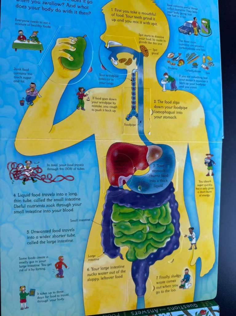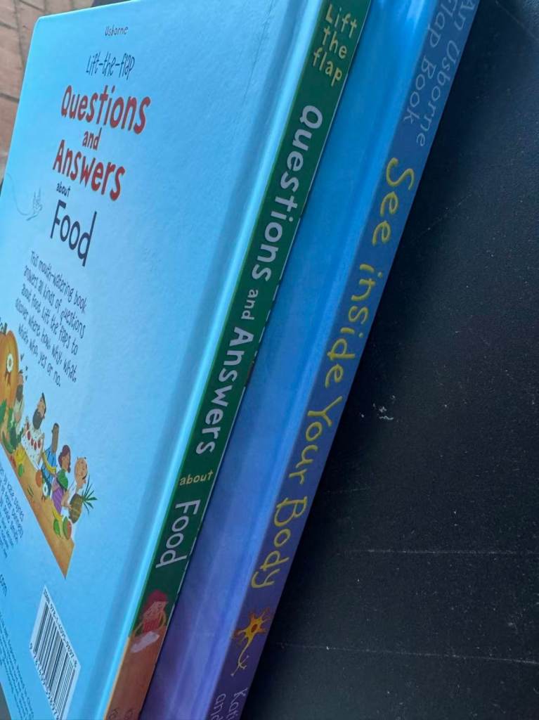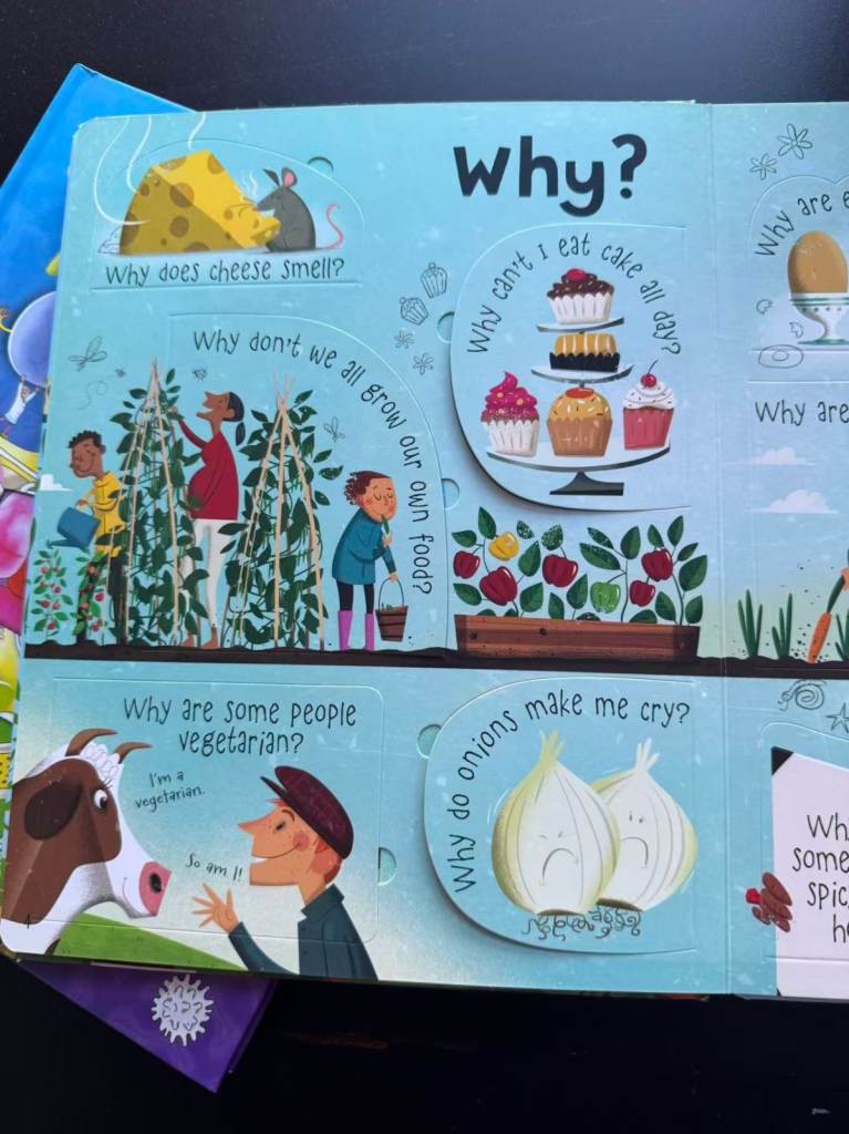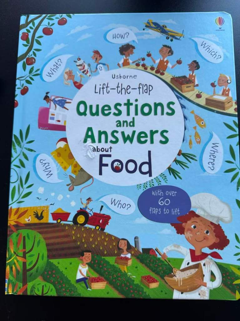 Usborne Questions & Answers About Food – Fun Q&A format covering where food comes from, nutrients, digestion, allergies, and foodie facts.
