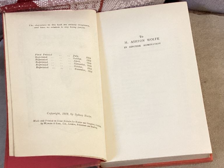 Vintage book by Sydney Horler. “ The Secret Service Man”. Reprinted November 1934, Hodder & Stoughton published, very good protected bright dust cover, not price clipped, not first edition but all round excellent condition especially the dust cover. £25.