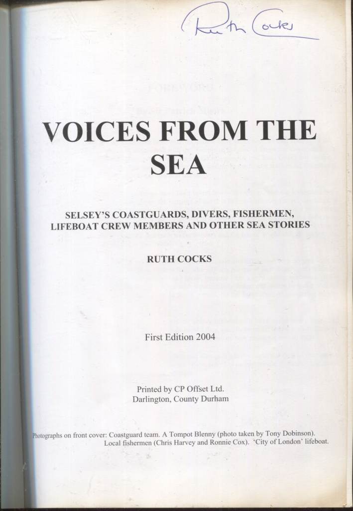 Voices From The Sea by Ruth Cocks First Edition Signed Paperback - RLNI Selsey