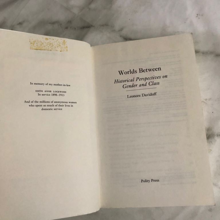“Worlds Between: Historical Perspectives on Gender and Class" by Leonore Davidoff is a textbook focusing on the intersection of gender, social classes, and economic disparities throughout history.