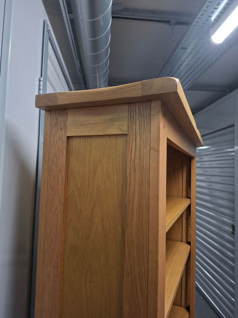 A strong, well-built piece with a clean, timeless look. Made from solid oak with adjustable shelves, giving flexibility for books, storage or display.