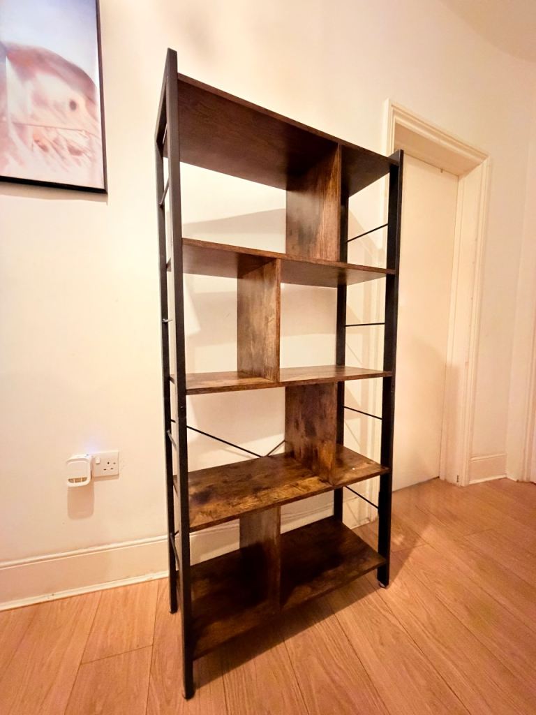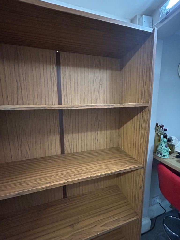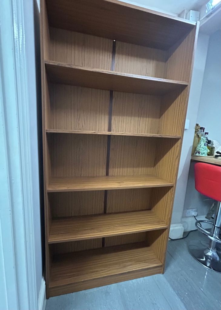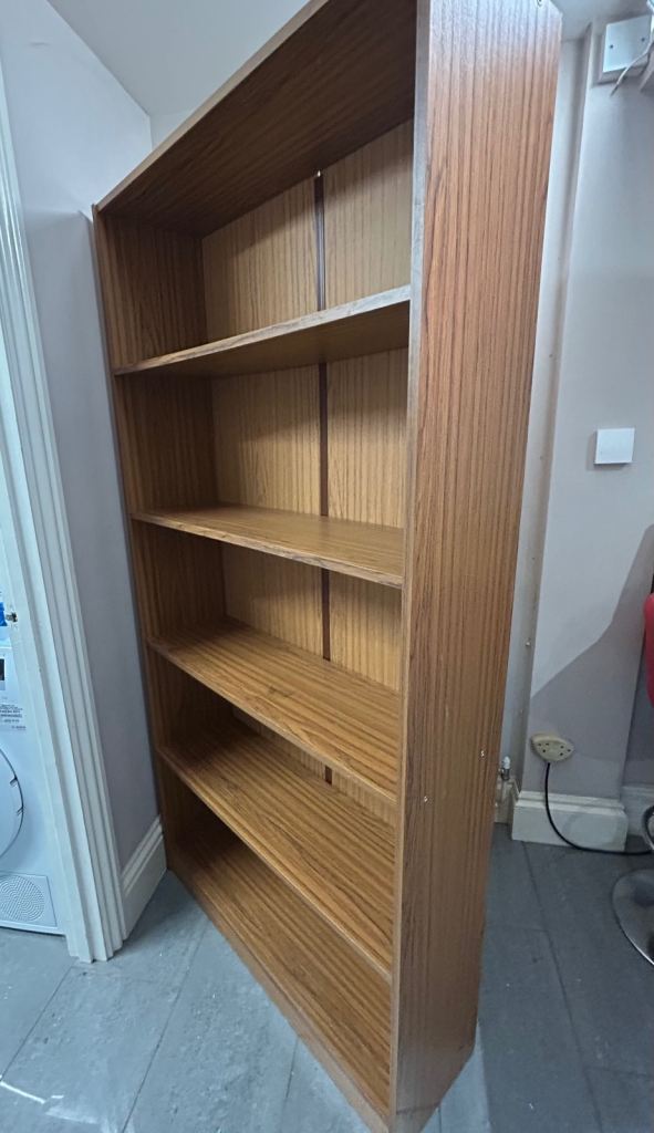 Bookcase Wood Effect 4 Shelves 3 adjustable H71in/180cm W36in/91cm D105in/27cm Good condition J038
