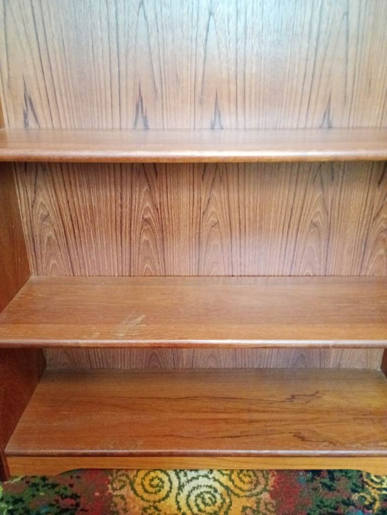 Bookcase , 3 shelves. H915mm , L760 , W250. Has a light ring from mug on top.