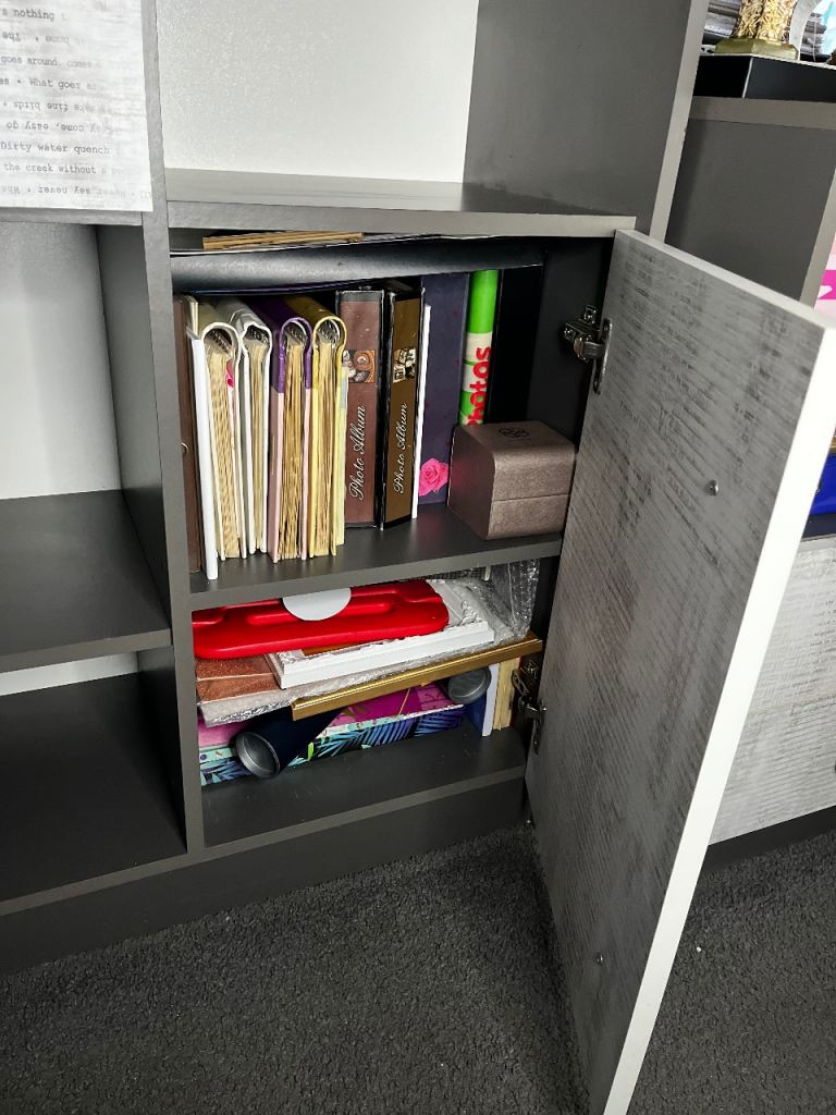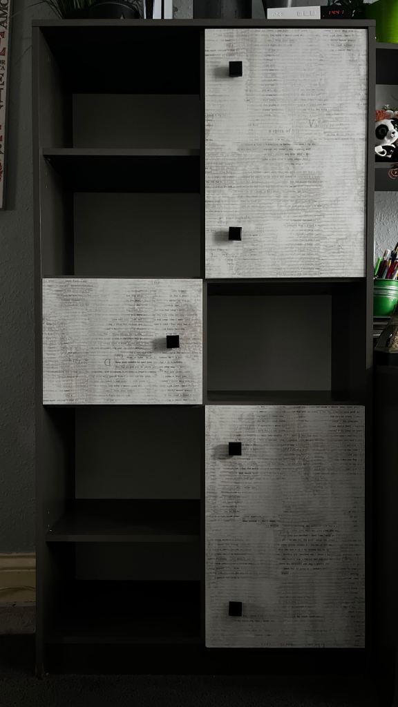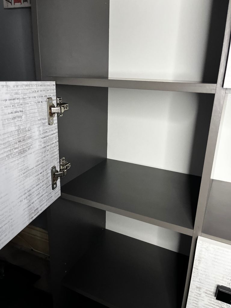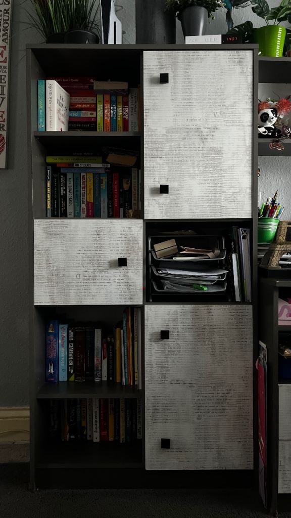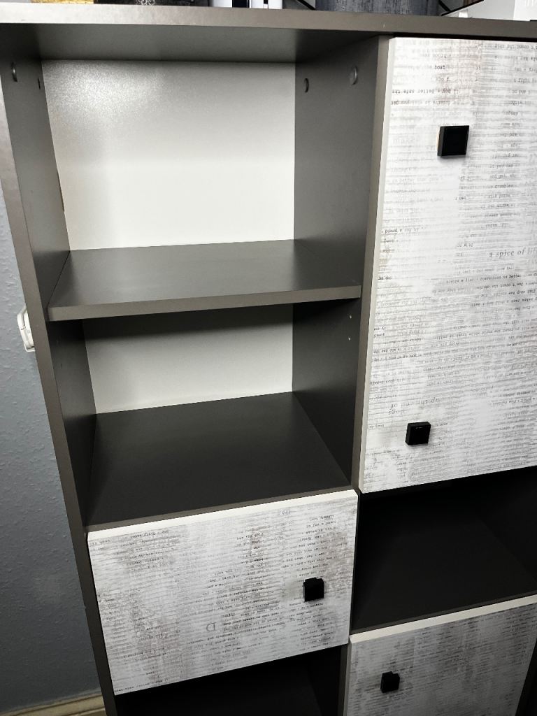 Posting for 2+ monthsGrey/white bookshelf, storage shelving unit with cupboards. Very good condition, maximum storage