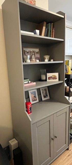 Posting for 1+ yearsHAUGA Grey Bookshelf w/ cabinet
