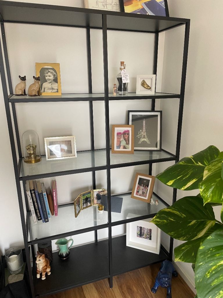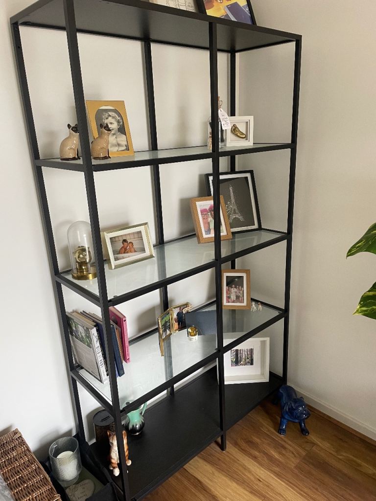Large IKEA black/glass shelving unit / display cabinet