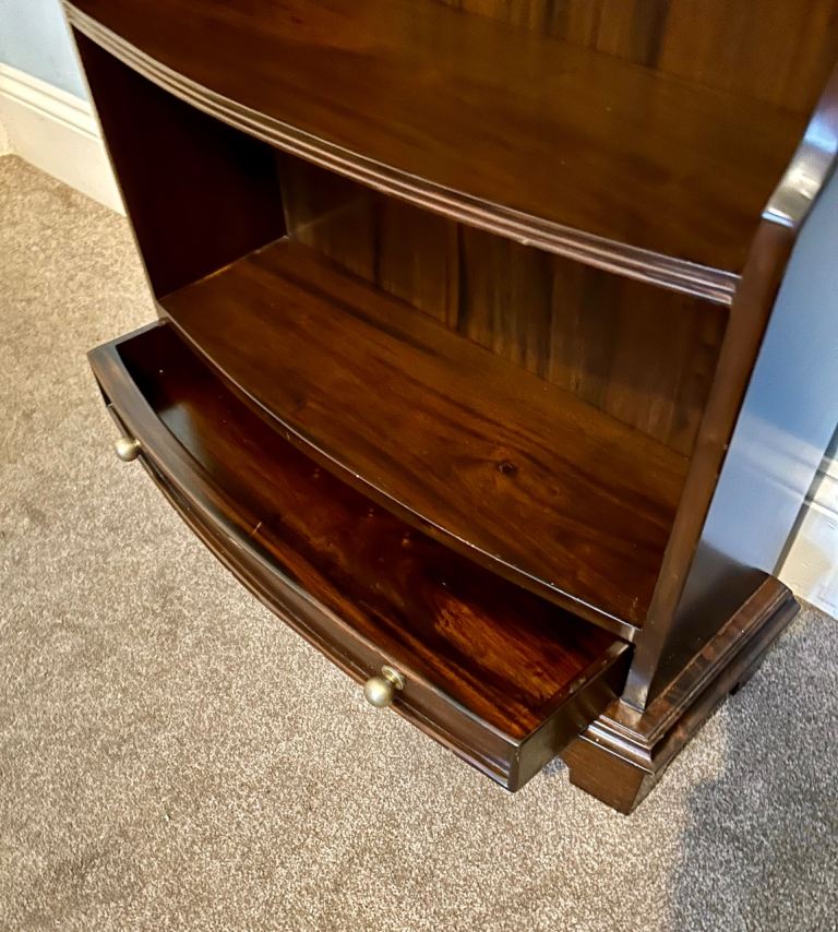 Mahogany Waterfall Bookcase 4 Fixed Shelves and Drawer Curved Edges