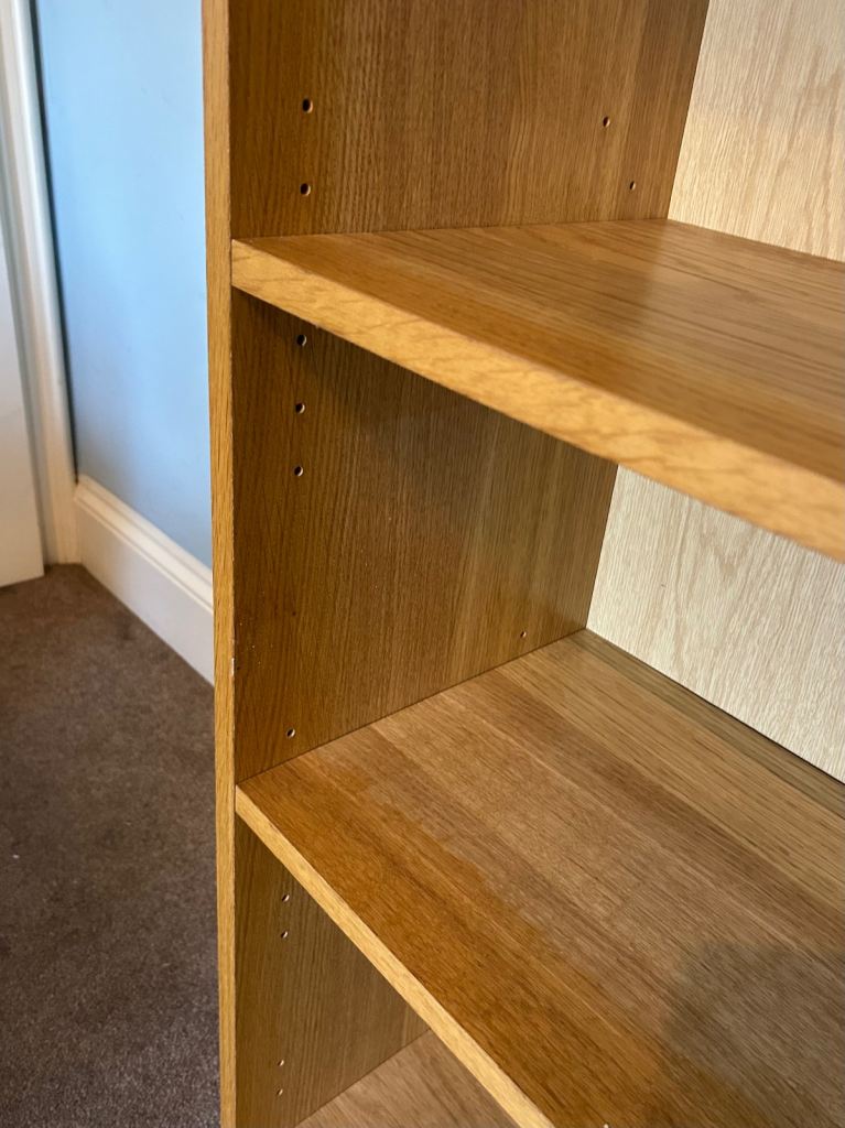 Oak Effect Bookcase 2 Adjustable Shelves H41in/104cm W31.5in/80cm D13in/33cm Good condition J133