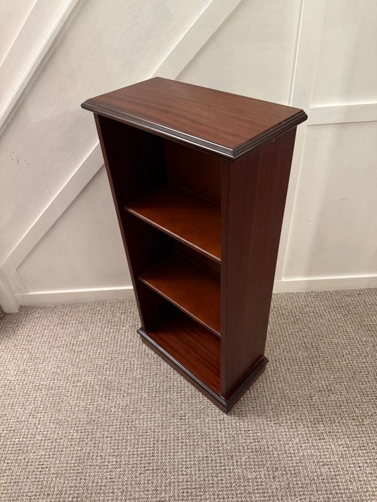 Three shelf, mahogany-finish bookcase
