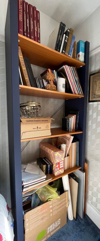 TWO matching tall and sturdy shelving units - each measures 210cm high x 80cm wide x 38cm deep