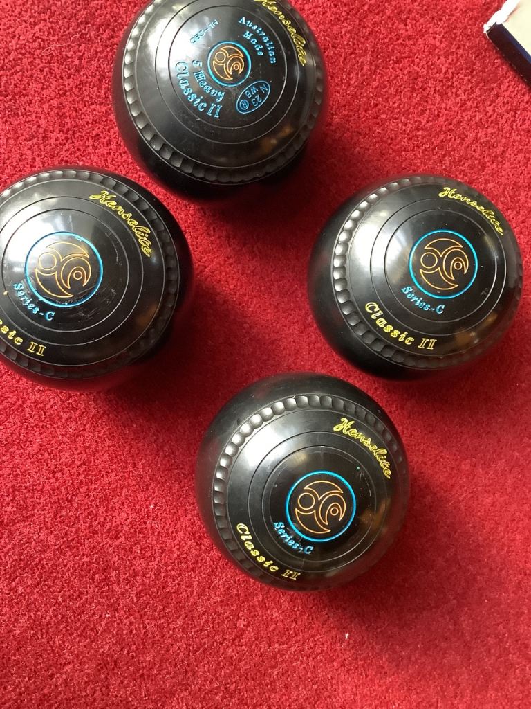 The Henselite Classic II Size 5 heavy weight Lawn Bowls are a set of 4 high-quality bowls designed for lawn bowling enthusiasts. Made by the reputable brand Henselite, these bowls are perfect for players looking for a medium weight option to enhance their performance on the lawn. With a size 5 designation, these bowls offer a reliable and consistent feel for players of all skill levels to enjoy a competitive game of lawn bowls. Brought 2 years ago at a cost of over £400 .