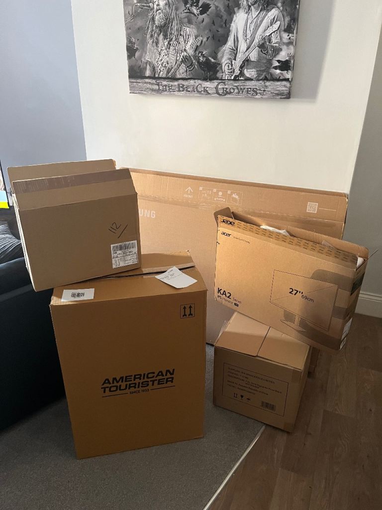5 x large cardboard boxes. All in excellent condition. Also include a 58” to box. £5 for all!