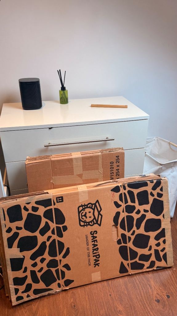16 pieces of cardboard packaging. Folds into a triangle 69cm x 36 cm. Safe way to post large pieces of art, posters etc. Brand new.