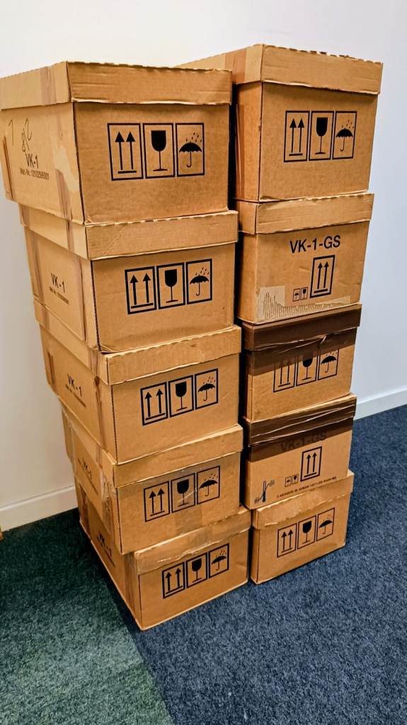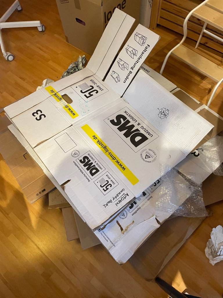 Strong good quality cardboard packing boxes. 3 different brands (PAK, Ikea, DMS) in sizes small, medium and large, with capacity to hold up to 30kg. Some require tape some don't, feel free to come and select as many as you like. £1 per box or £20 for all of them (about 30 boxes).