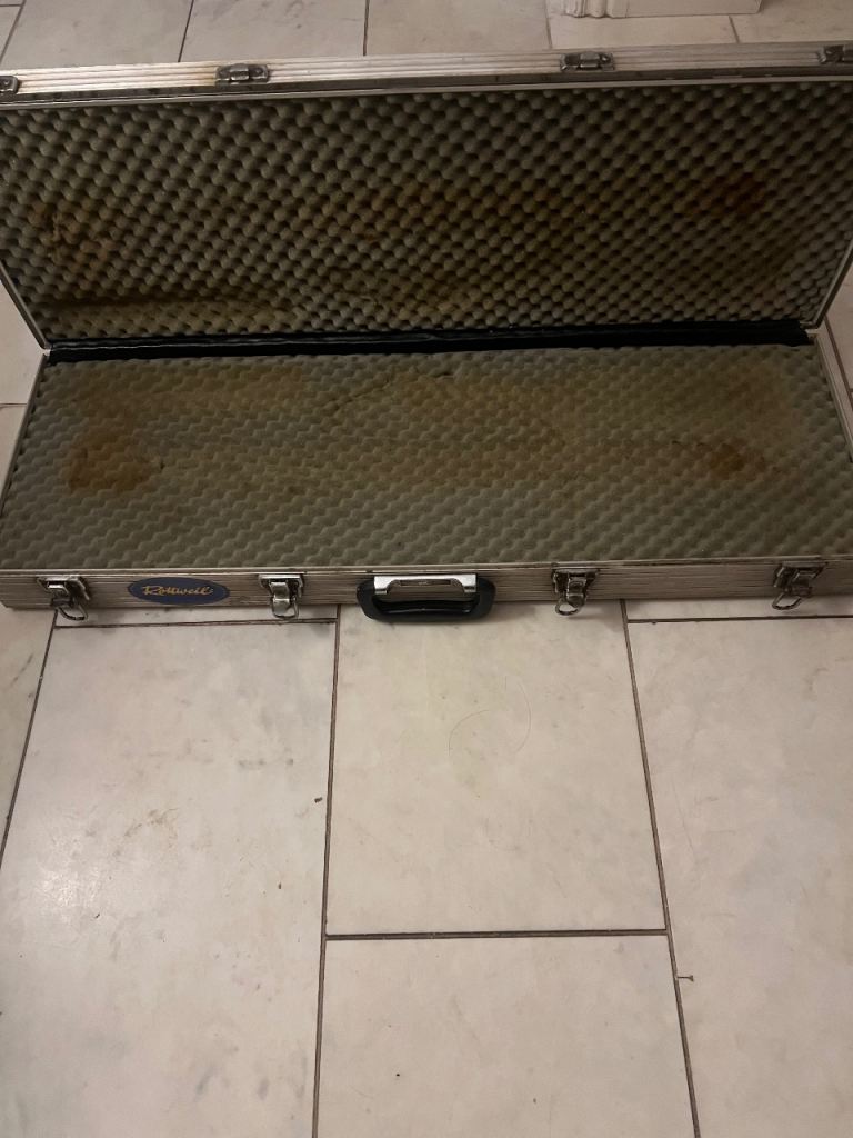 Large Metal box approximately 3ft length “Rottweil”. Three closing hinges. Lined with soft sponge £6. Buyer to collect.