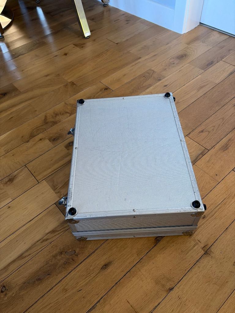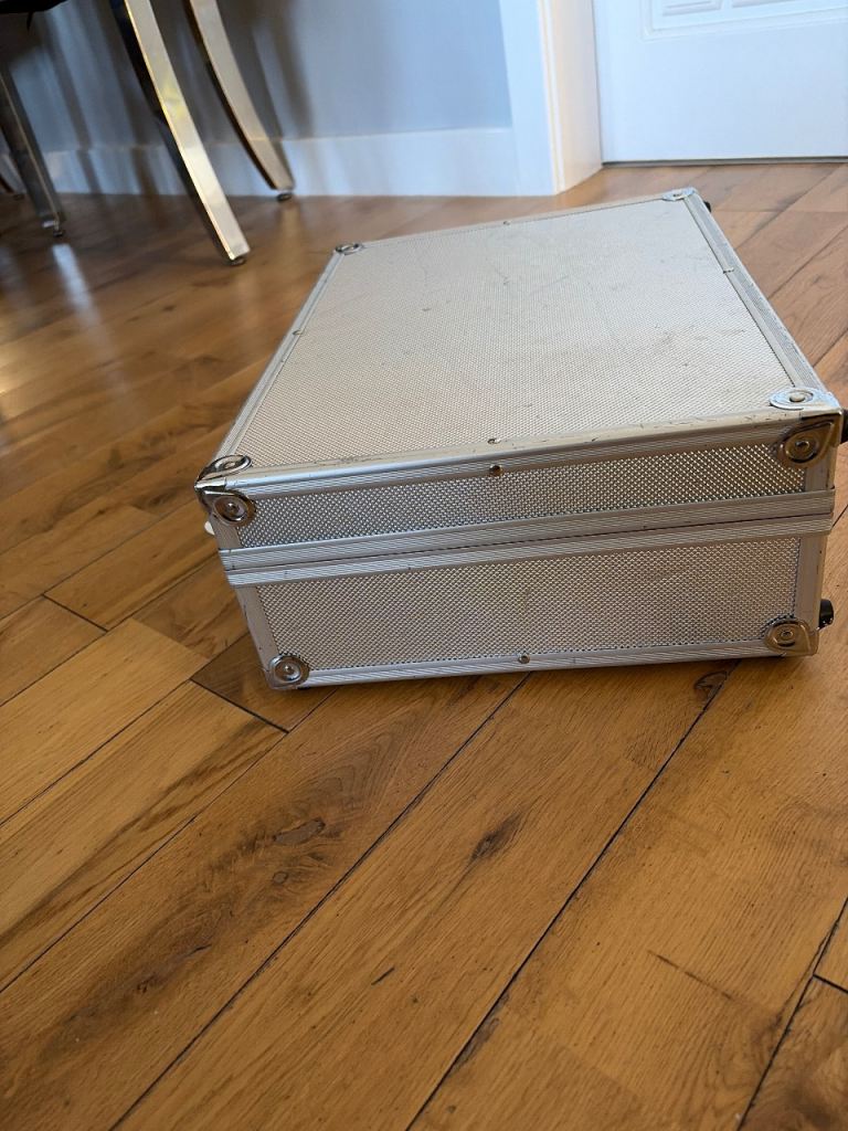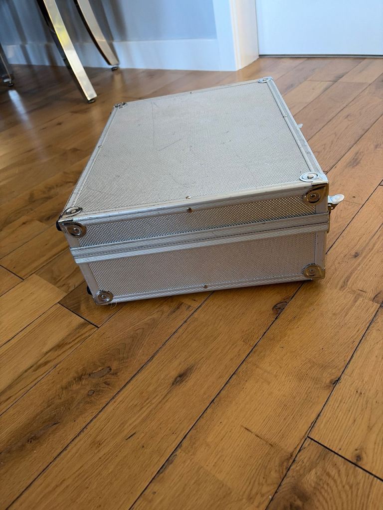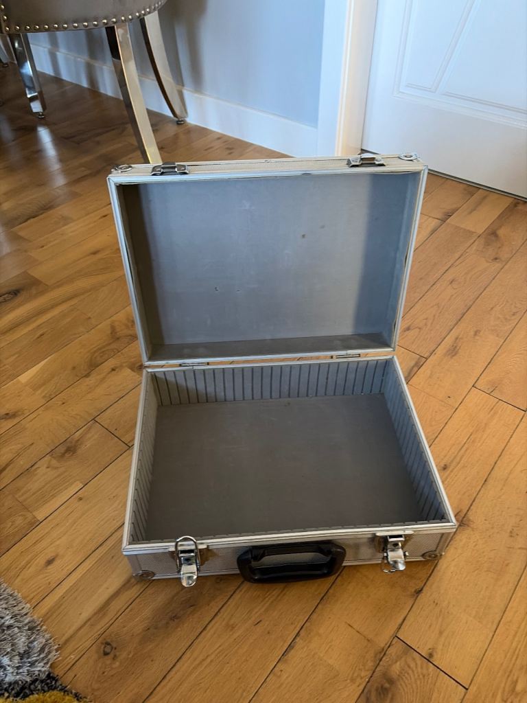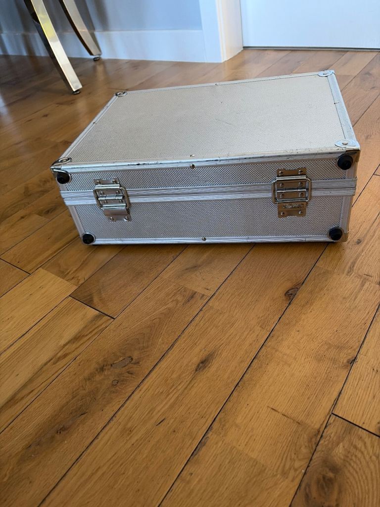 Metal storage box used in good condition some little scuffs inside is padded
