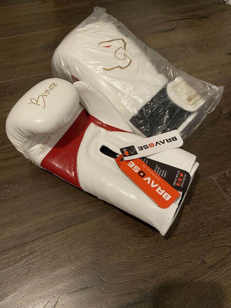Bravose Alpha 16oz Boxing Gloves White red and Gold Designed - NEW with tags