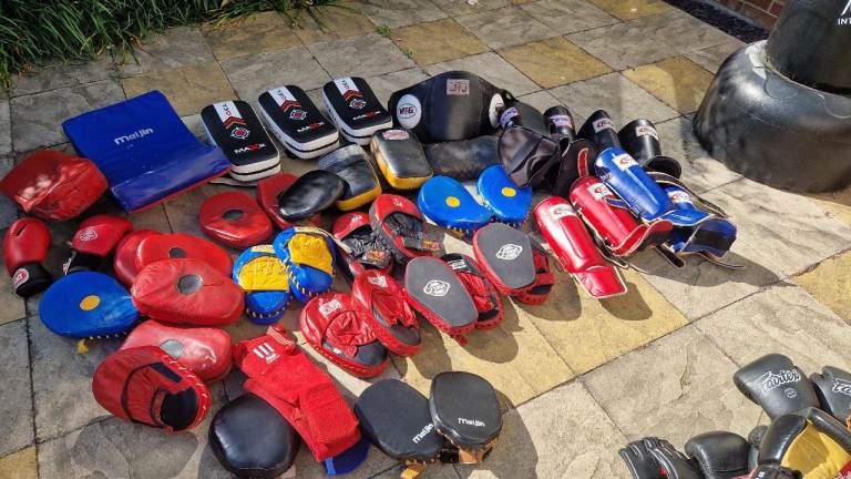 Four large bags of boxing gloves and pads. Various sizes. All have been used and most in great condition. Various brands and colours. Ideal for anyone wishing to start a fitness or boxing class.