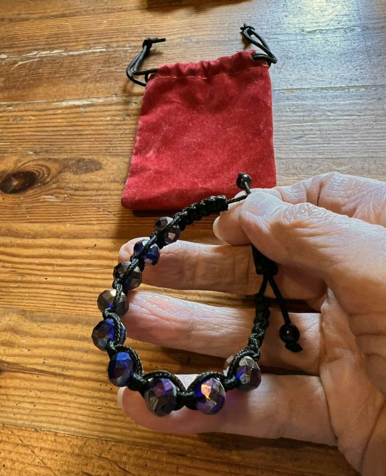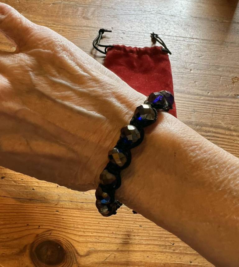 2 x Pretty Bracelets one with Blue Stones, one with Black sparkly Stones as follows: